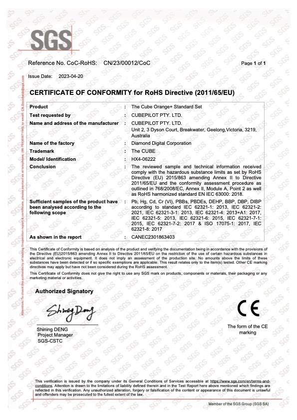 <figure><img src="https://3175993181-files.gitbook.io/~/files/v0/b/gitbook-x-prod.appspot.com/o/spaces%2F-LUhw7cdLeWVORgnTA3i%2Fuploads%2FLUuzsUhAYBokM5AAs9D4%2FThe%20Cube%20Orange%2B%20Standard%20Set%20CoC%20ROHS%20Certificate%20-.jpg?alt=media&#x26;token=8c07a054-ad09-4215-b715-056a690b7e9d" alt=""><figcaption></figcaption></figure>